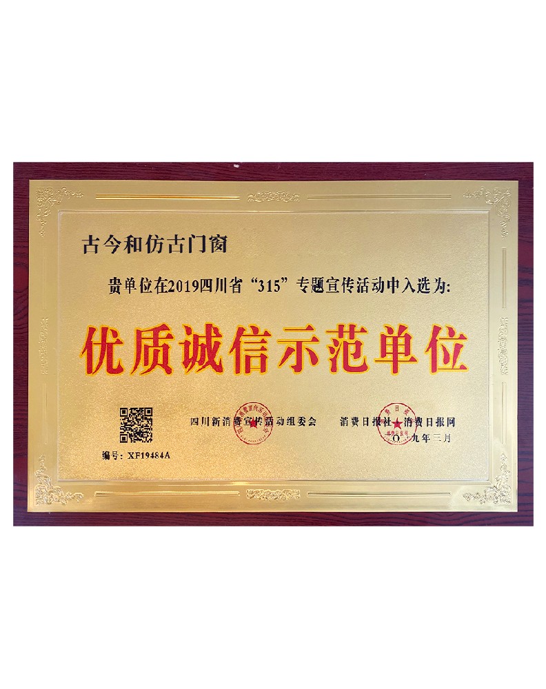资质荣誉Gu Jin He Doors and Windows Co., Ltd